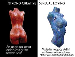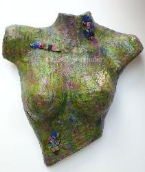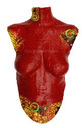"RESILIENCE" Artist Valerie Fuqua chose to tell a story about the strength and courage of women. Although women are often referred to as the "weaker sex", Valerie's series negates this myth and each torso represents the powerful impact women have on both their own families and society as a whole. Women begin their lives as daughters and from there they each embark on their personal journey. This collection of torsos depicts women whose ages span several decades. They include artists, poets, healers, musicians, survivors of cancer and sexual abuse, mothers and grandmothers. Everyone's body has a story to tell and each carries both emotional and physical scars. It is Valerie's belief that life's obstacles make a person stronger and these "scars" should be worn as badges of honor. The glass and stone embellishments represent the scars of life and the beauty and strength they add to our character. |